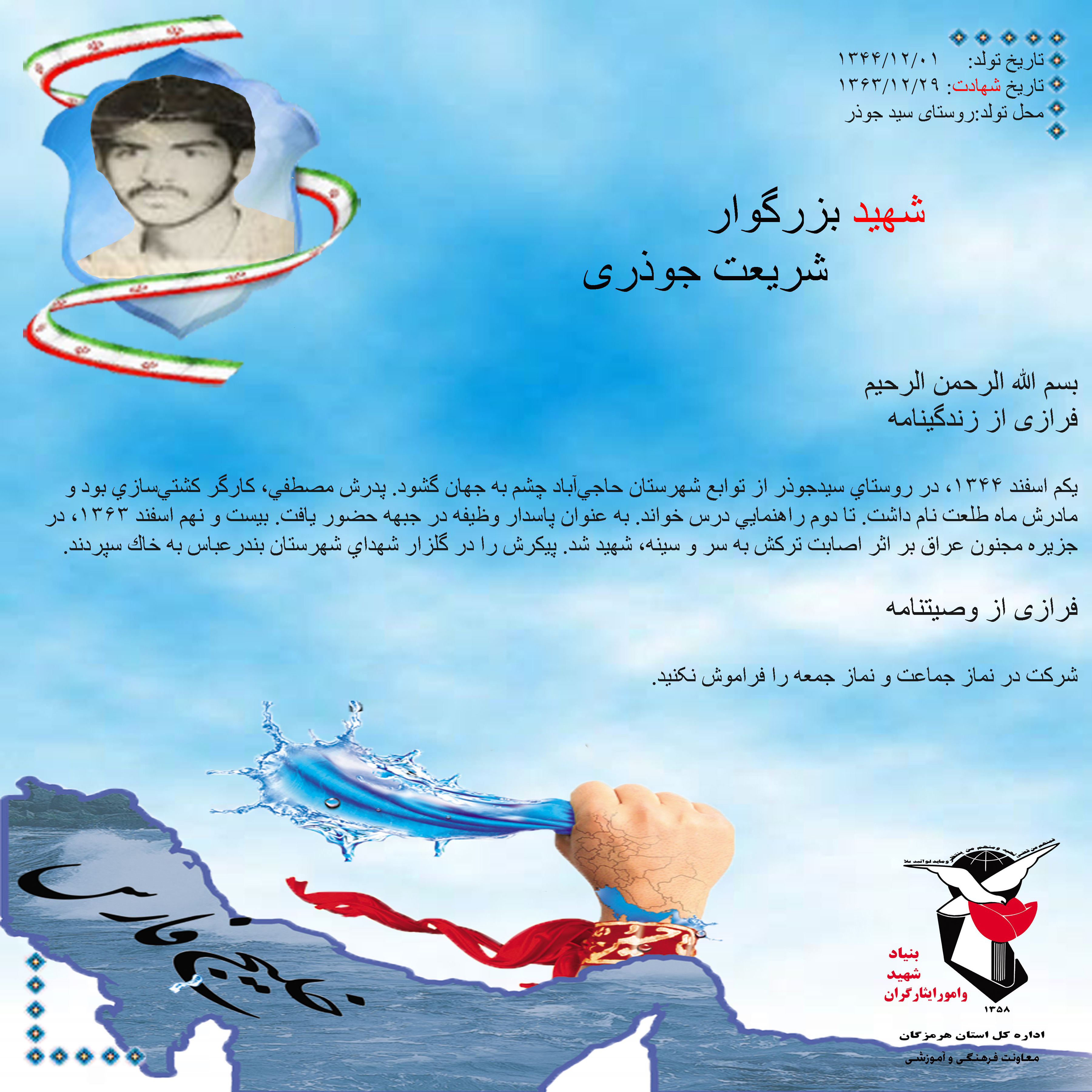 فرازی از زندگینامه و وصیتنامه شهید بزرگوار شریعت جوذری