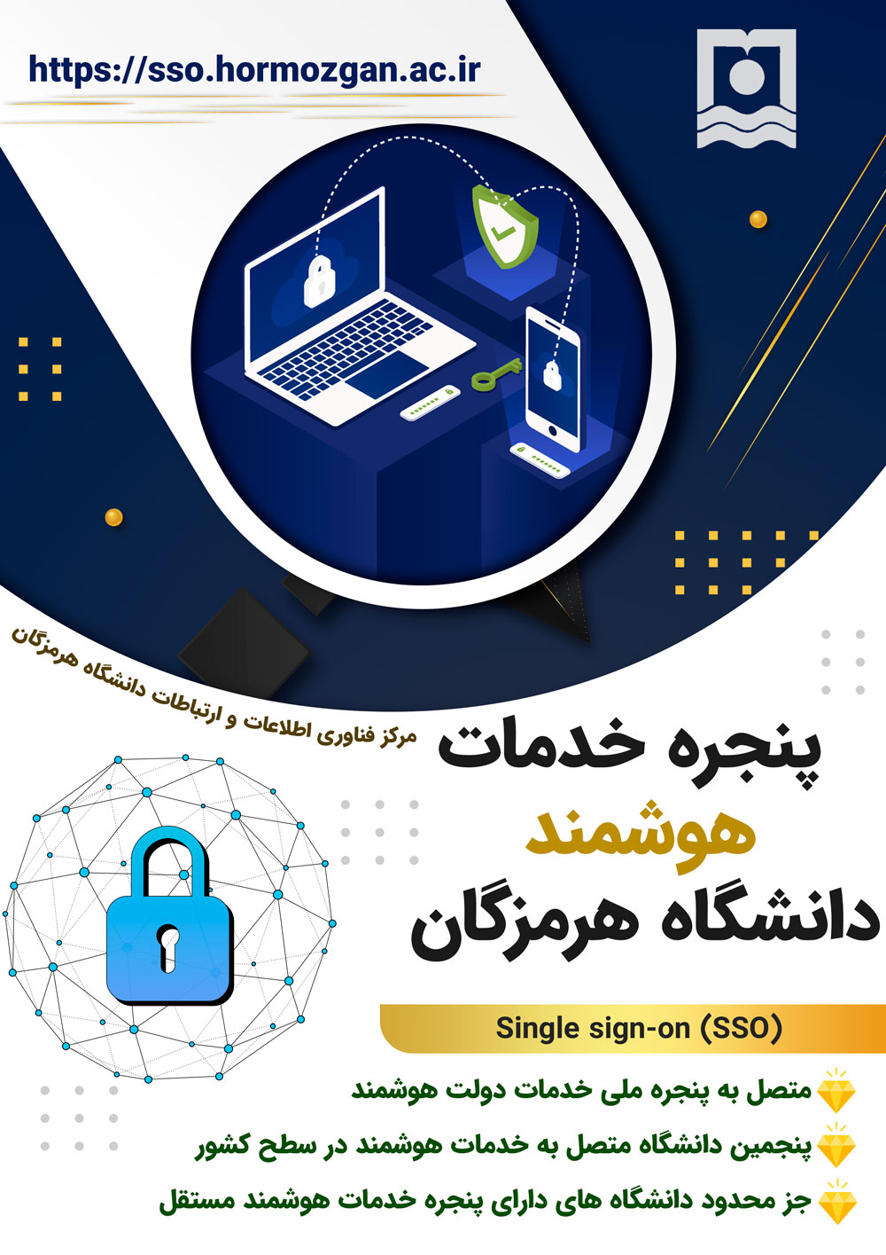 پس از اجلاس رؤسای دانشگاهها و مؤسسات آموزش عالی و تاکید وزیر محترم علوم بر اتصال دانشگاه ها به پنجره خدمات هوشمند، این موضوع به طور جدی در دستور کار این مرکز قرار گرفت و در دو مرحله این پروژه تکمیل و انجام شد، در مرحله اول ایجاد یک پنجره و اتصال آن به شبکه هوشمند دولت بود که این کار صورت گرفت و در مرحله دوم که مرحله نهایی طرح بود ایجاد پروتکل های امن و استاندارد ارتباطی جهت اتصال دیگر سامانه های دانشگاه به این پنجره بود که آن نیز همینک تکمیل و در مرحله اجرا قرار گرفته است و هم اکنون تعدادی از سامانه های دانشگاه به پنجره خدمات هوشمند متصل می باشند. با این تلاش دانشگاه هرمزگان جز 5 دانشگاه نخست متصل به پنجره خدمات هوشمند وزارت عتف در سطح کشور شد و همچنین جز محدود دانشگاه های دارای پنجره خدمات هوشمند مستقل می باشد در ذیل برخی از ویژگی های متمایز این پنجره خدمات هوشمند اعلام می گردد